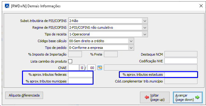 Este campo define a base de cálculo do valor aproximado do tributos, opções disponíveis: